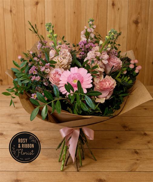 Disclaimer - All our bouquets are Handtied by our skilled florists, avoiding the use of unwanted plastics, with 'Kraft' brown paper and a Ribbon to compliment or if you'd like to add a 'Kraft' aqua box to present your flowers ready for display please select this before checkout.