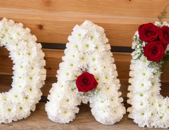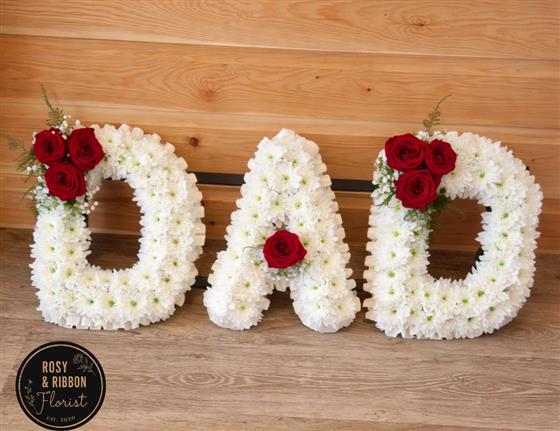 A DAD funeral letter tribute lovingly handcrafted using fresh flowers, designed as a meaningful and personal way to honour the life and memory of a much-loved dad.