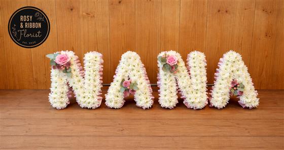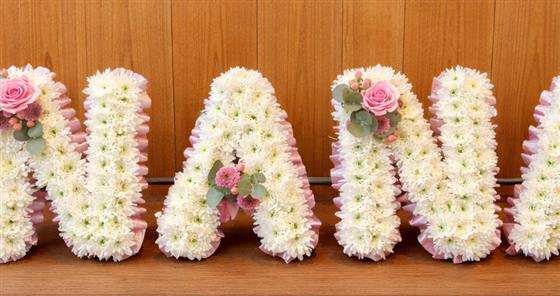 A NANA funeral letter tribute lovingly handcrafted using fresh flowers, designed as a heartfelt and meaningful way to honour the life, love and memory of a much-loved nana.